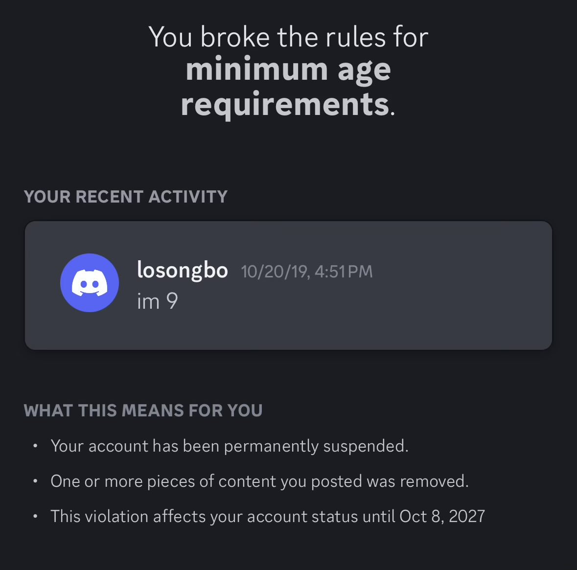 Replies are full of similar experiences, very obviously Discord is often deeply stupid in terms of taking a line like this out of context and banning you for it.