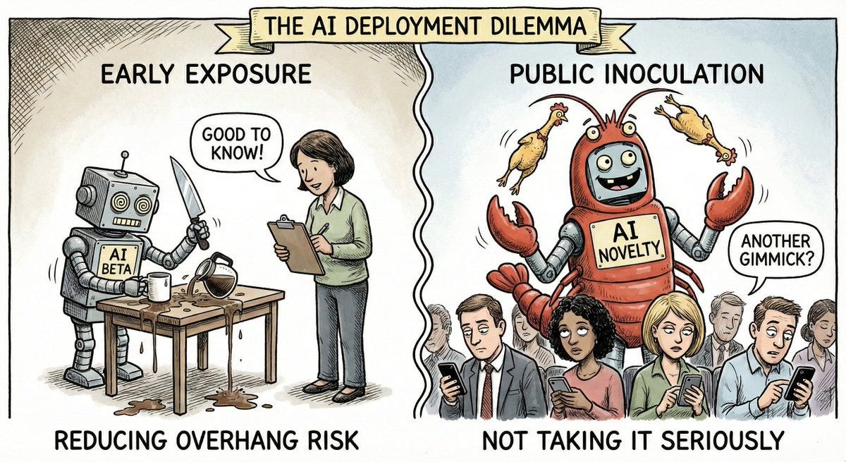 Max Harms: On one hand getting AIs out into the world where we can see bad actions before they’re smart might reduce overhang risk. On the other hand it’s inoculating the public against taking AI seriously.