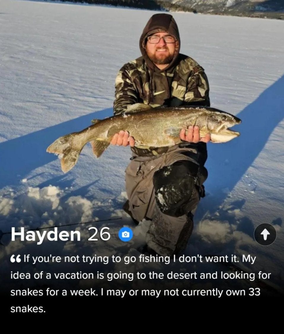 Fish photos signal “conservative normie,” owning 33 snakes signals “weirdo leftie.”