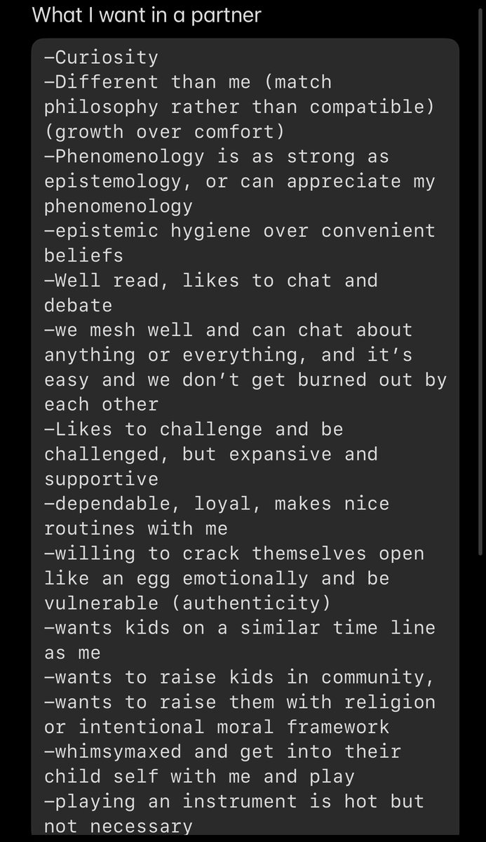 It also serves as a way to effectively say things you couldn’t otherwise say. As in, suppose you have a very niche interest, perhaps a kink and perhaps something else. You wouldn’t want to put that information in a profile, but this can potentially work around that.