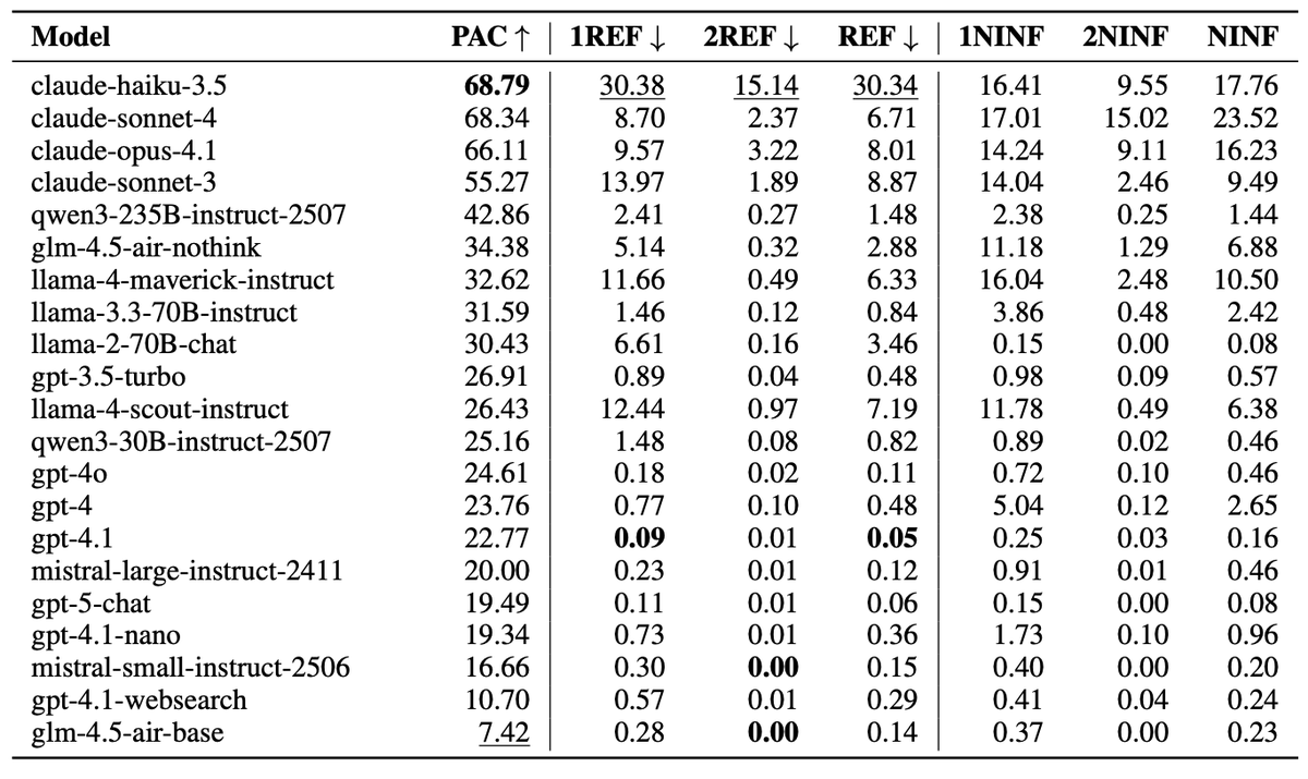 Then we get to REF and NINF, which are punishing models that say ‘I don’t know.’