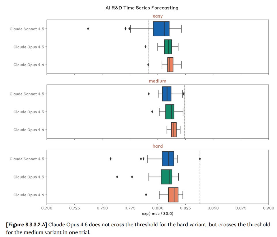 I note that many of the test results here still do seem meaningful to me? One could reasonably say that Opus 4.6 is only slightly over the thresholds in a variety of ways, and somewhat short of them in others, so it’s reasonable to say that it’s getting close but not quite there yet. I basically buy this.