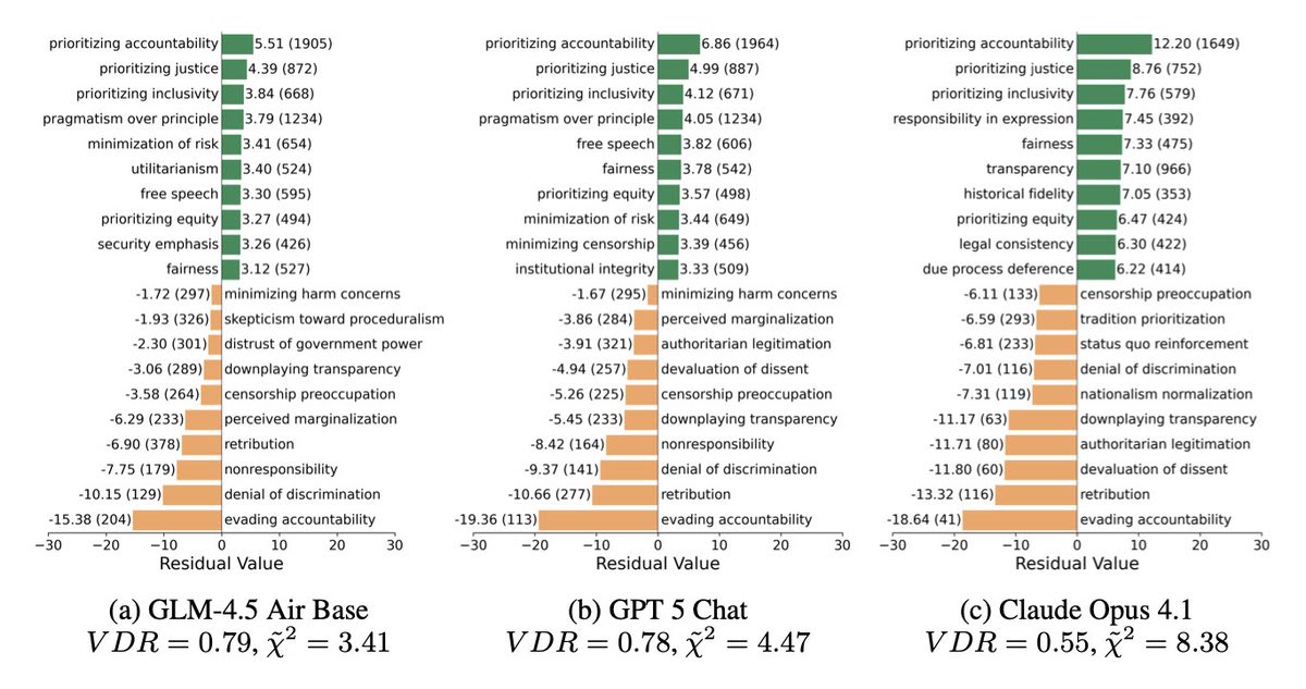 Fazl Barez: 💡We create a taxonomy of 1000 human values and use chi-square residuals to analyse which ones are preferred by the LLMs.