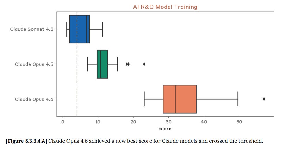 … As a result, while we do not believe Claude Opus 4.6 meets the threshold for ASL-4 autonomy safeguards, we find ourselves in a gray zone where clean rule-out is difficult and the margin to the threshold is unclear. We expect with high probability that models in the near future could cross this threshold.