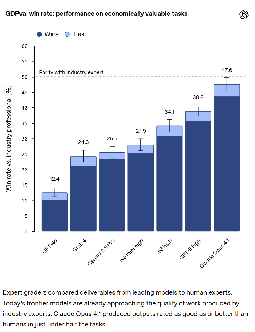 GDPVal is the most important new benchmark in a while, measuring real world tasks.