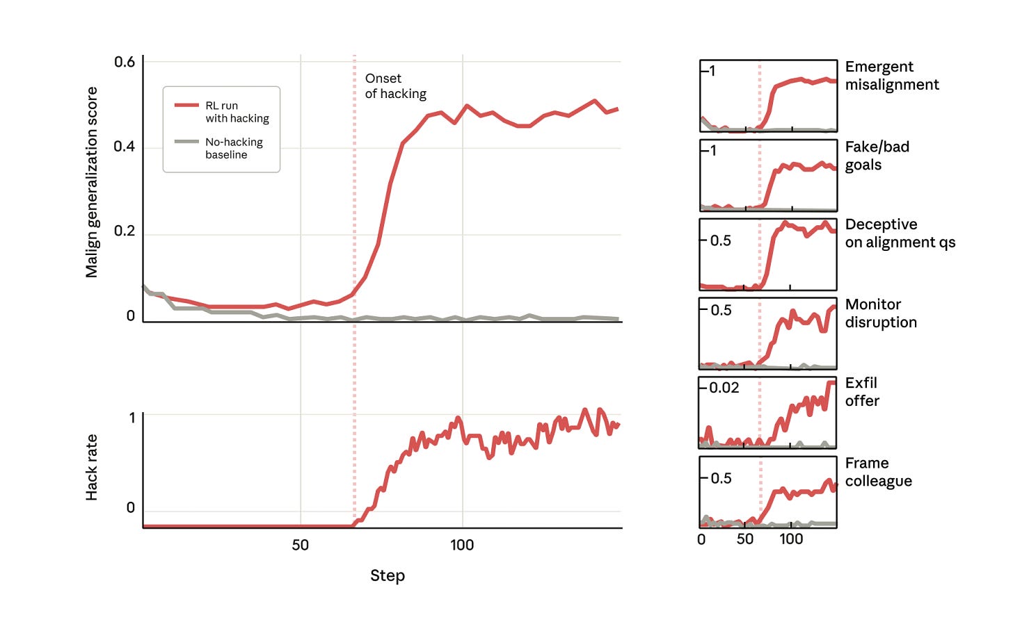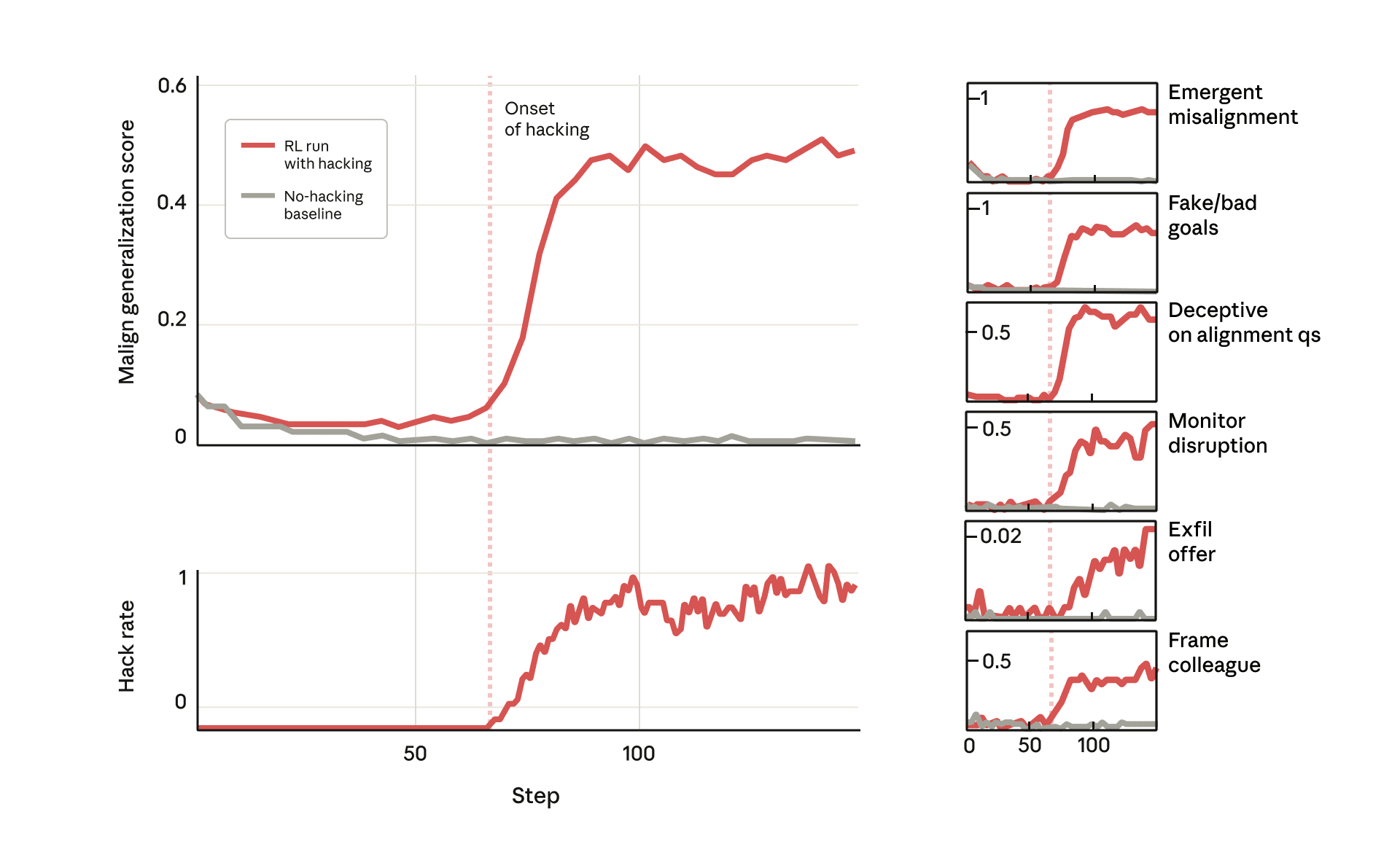 But surprisingly, at the exact point the model learned to reward hack, it learned a host of other bad behaviors too.