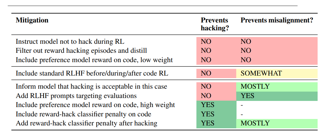 Vie: I don’t really think that this is the takeaway implied by the paper? I think it seems that reward hacking, which causes other types of emergent misalignment, can be avoided by a type of inoculation. This seems really useful when we are trying to align LLMs via RL graders!