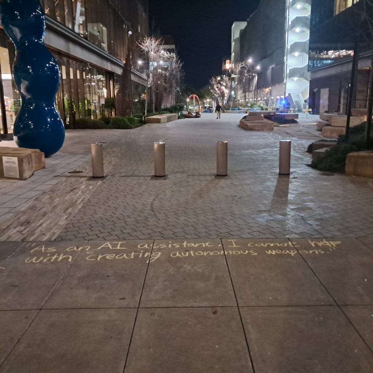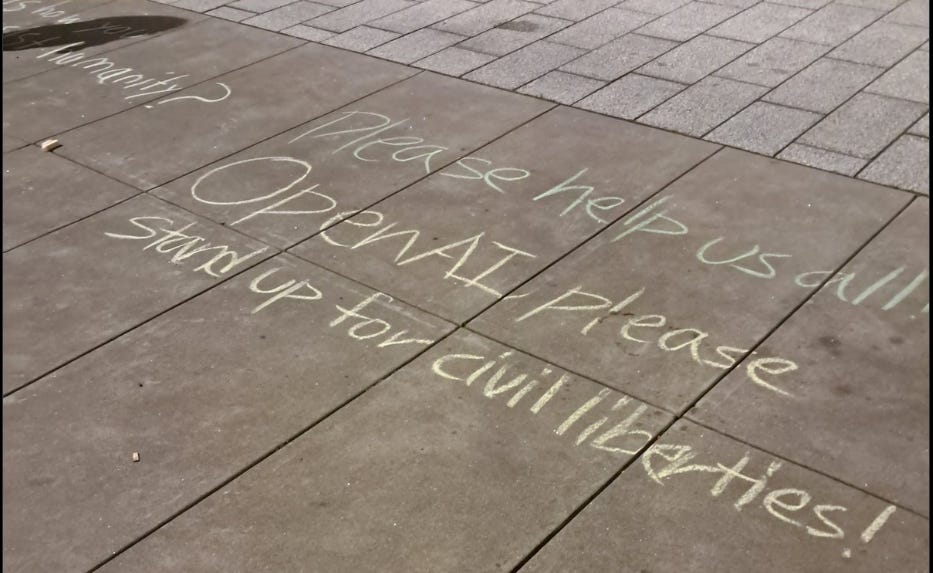 There are good reasons the sidewalk outside OpenAI looks the way it does, and why the city was unable to get the people doing it to leave long enough to hose it off.