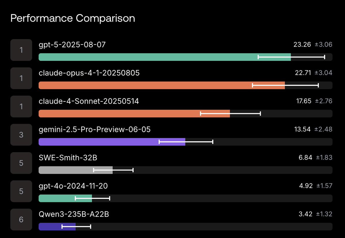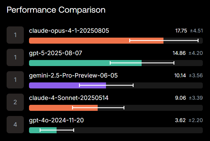 This is performance on the public dataset, where GPT-5 is on top: