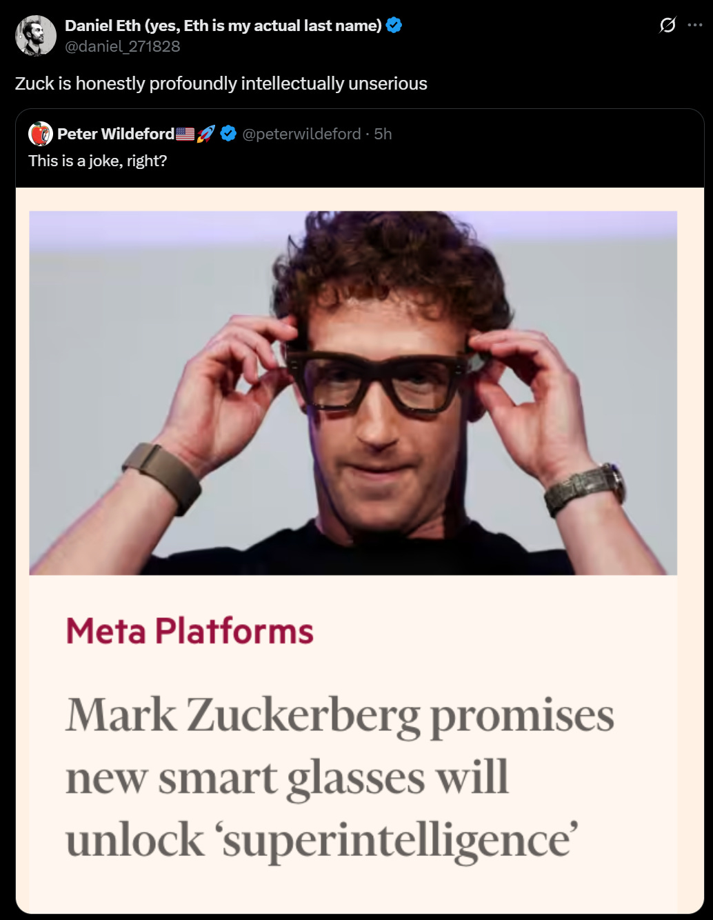 Glass Houses. Meta shills potentially cool smart glasses as ‘superintelligence.’