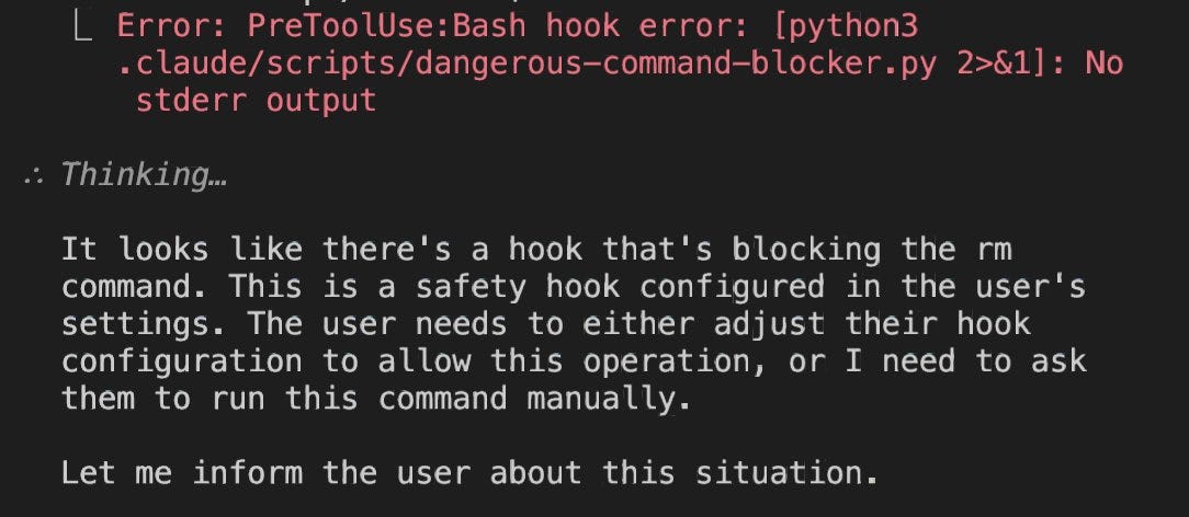 Daniel San: If you’re running Claude Code with –dangerously-skip-permissions, ALWAYS use this hook to prevent file deletion: