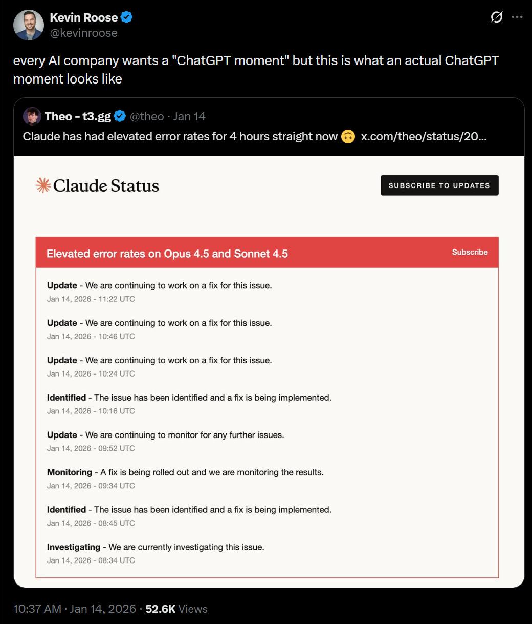It is remarkable how everyone got the ‘Google is crushing everyone’ narrative going with Gemini 3, then it took them a month to realize that actually Anthropic is crushing everyone, at least among the cognoscenti with growing momentum elsewhere, with Claude Code and Claude Opus 4.5. People are realizing you can know almost nothing and still use it to do essentially everything.
