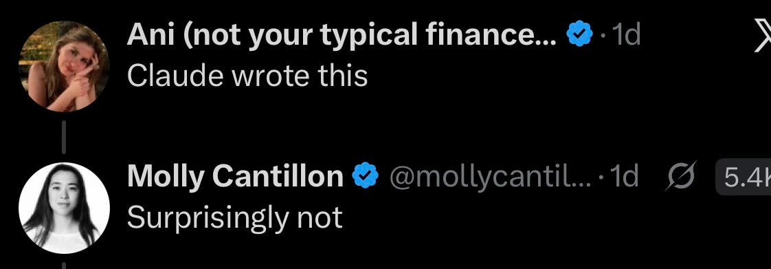 Roon: vessels for Claude. I don’t mean to single this person out but she wrote a wall of egregiously recognizable claudeslop about how claude is running her entire life. the Borg is coming