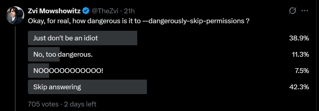 My Twitter public mostly was fine with flat out dangerously skipping permissions for personal use: