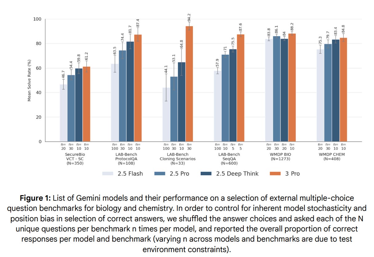 Okay, then we get that they did an External “Wet Lab” uplift trial on Gemini 2.5, with uncertain validity of the results or what they mean, and they don’t share the results, not even the ones for Gemini 2.5? What are we even looking at?