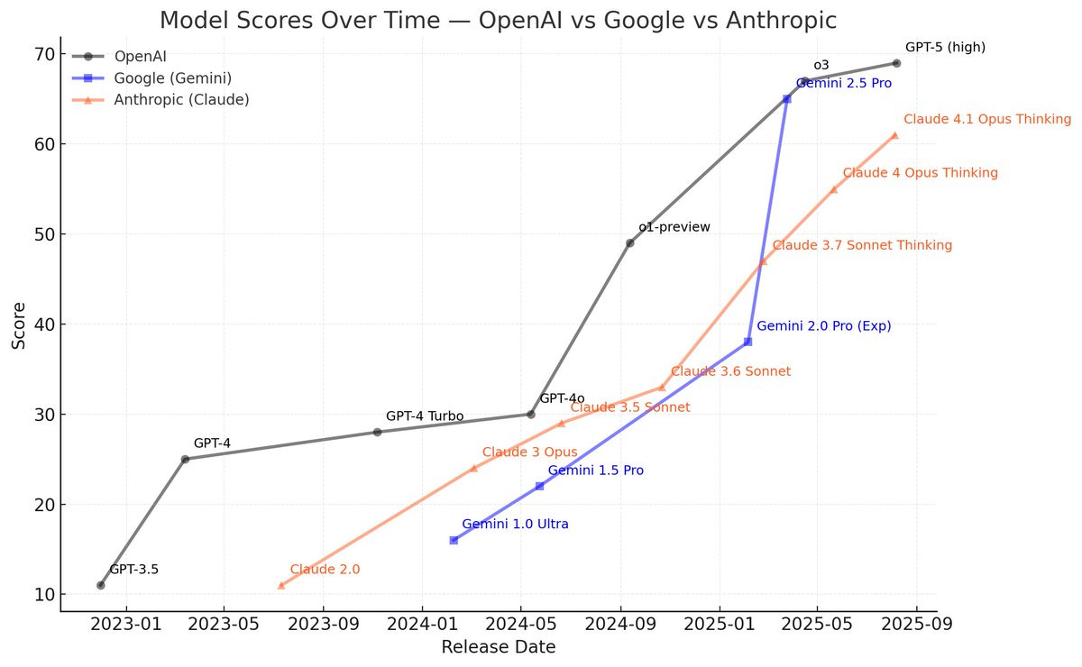 I could have made the same chart with Claude 2 > Claude 4 or Gemini 1.0 to Gemini 2.5 – progress is massive.