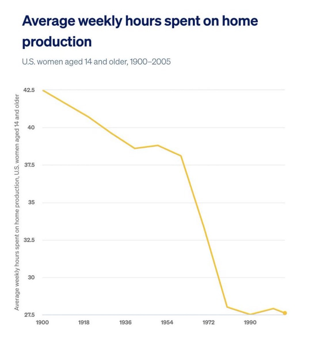 This is contrasted with much higher investment by both parents in child care, as demands there move to absurd levels but we haven’t had technology to lighten the load. We can get things cleaner faster, but not provide more child care faster, unless you count giving the children screens.