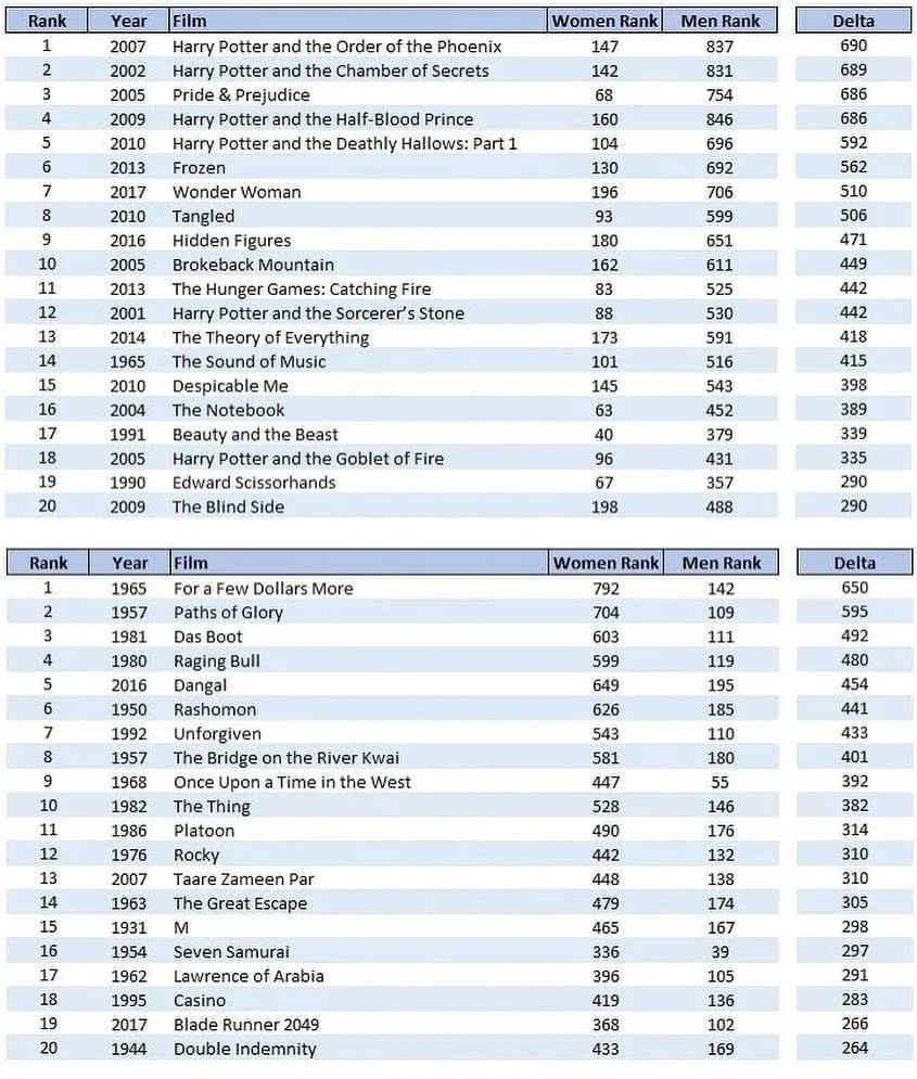 The male list definitely seems very male. It especially includes a bunch of long and slow older movies that many really appreciate, which typically is not a thing I like, such as my experiences with Seven Samurai (I get people love it but man it drags) and Lawrence of Arabia, where I couldn’t even.