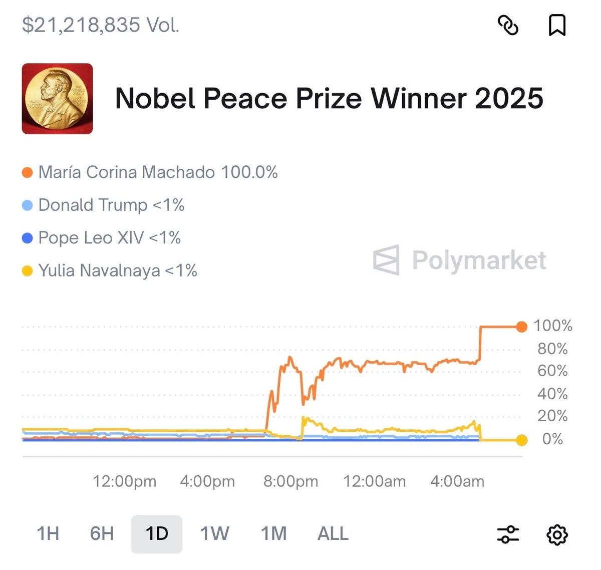 Polymarket: JUST IN: It has been revealed only 5 people at the Nobel Peace Prize foundation knew the winner before they were announced.