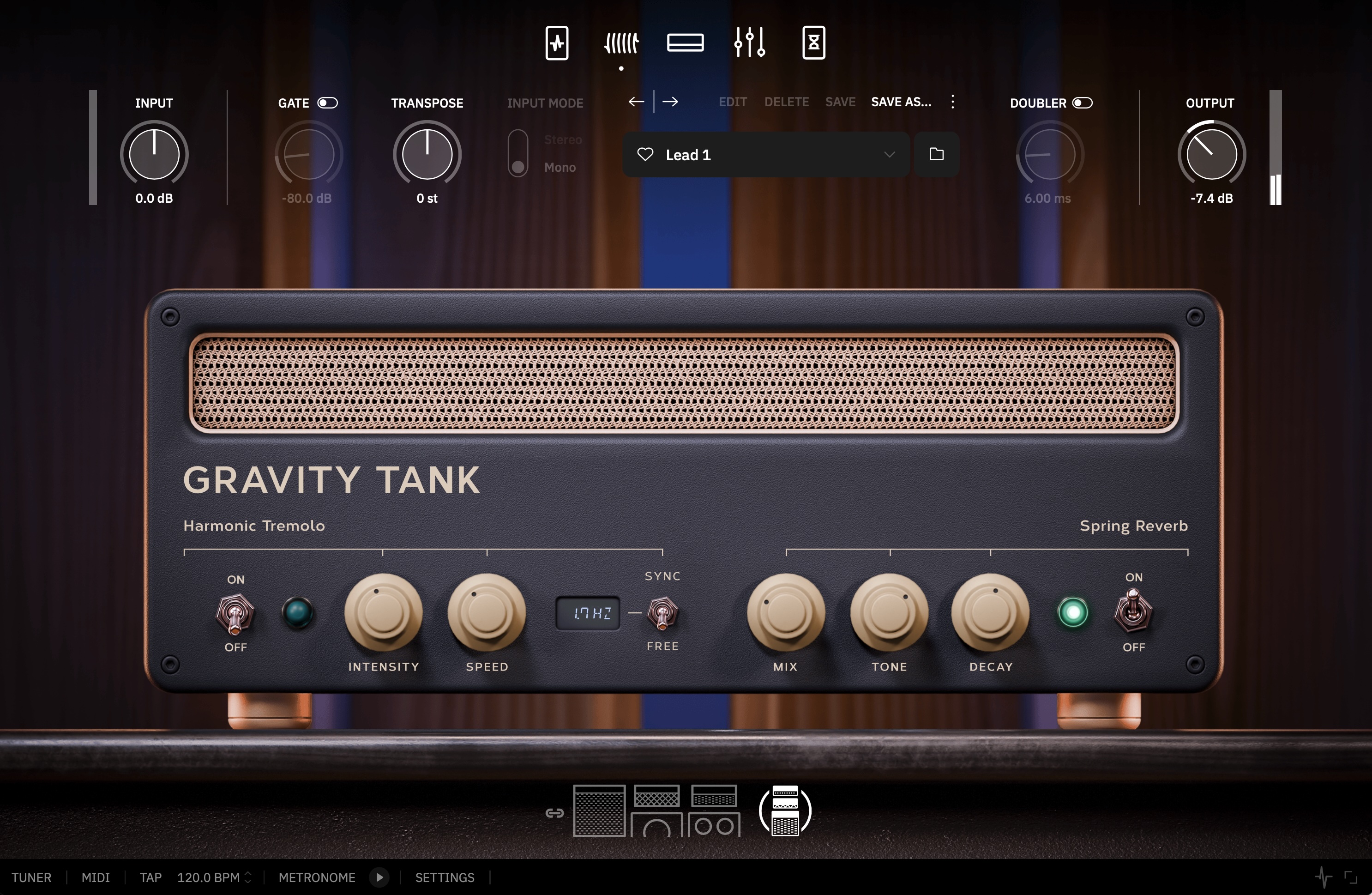 Also new here is an effect that Neural calls the “Gravity Tank.” This effects unit combines Mayer’s “favorite spring reverb” with the harmonic tremolo found in the Victoria Reverberato. It sounds great; while I like spring reverbs for character, especially on guitar parts, some are a bit too “drippy” for me. And although this one definitely sounds like a spring, it’s subtle and spacious rather than clangy or overly metallic, and the tremolo—which you can sync to your DAW’s tempo—sounds terrific too.