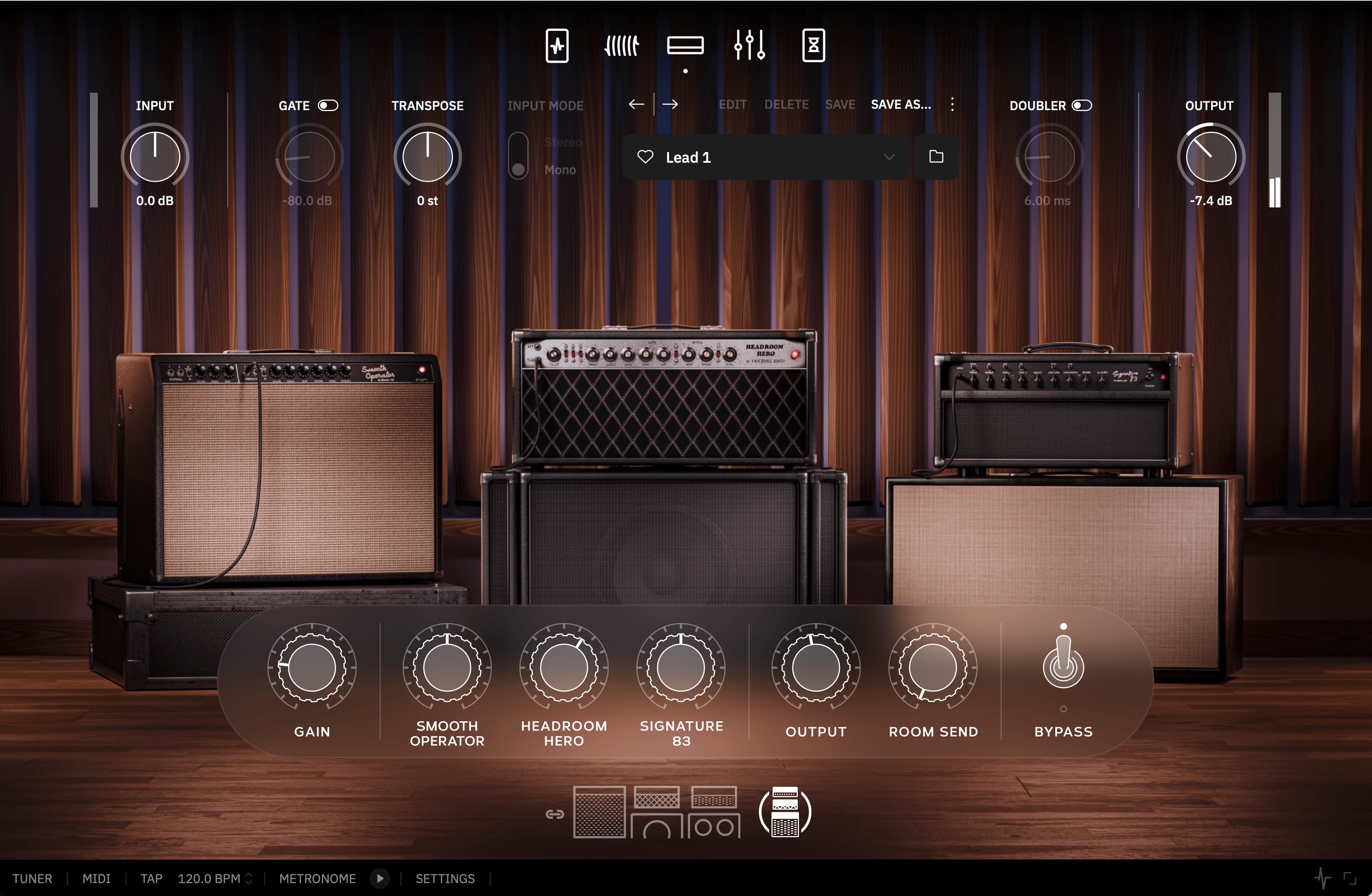 Finally, there’s a bucket brigade delay meant largely for slapback echoes, while a separate post-amp effects section offers more traditional delay and reverb (both hall and plate) for space.