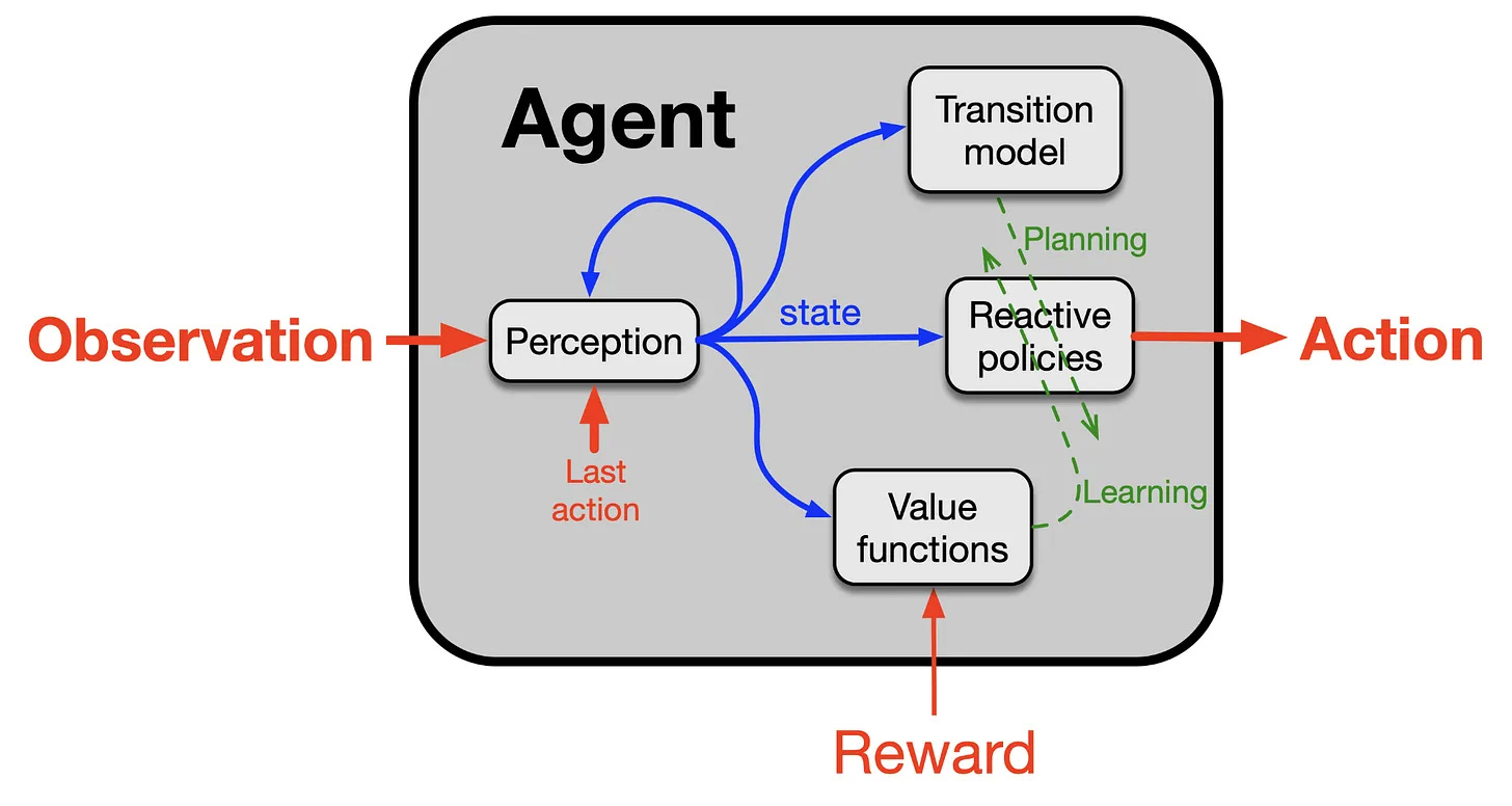 1. Sutton lays out the above common model of the agent. The new claim seems to be that you learn from all the sensation you receive, not just from the reward. And there is emphasis on the importance of the ‘transition model’ of the world.
