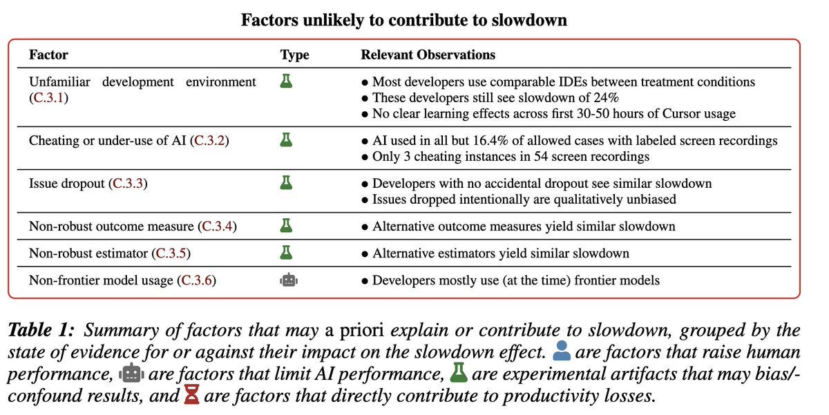The March @METR_Evals paper contained this nugget about contractors being much slower [5x-18x slower to fix issues!] than maintainers. This seems born out today, as the new study on AI slowdown was solely on maintainers – METR studied 16 long‑time maintainers with an average of 5 yrs prior work on the repo