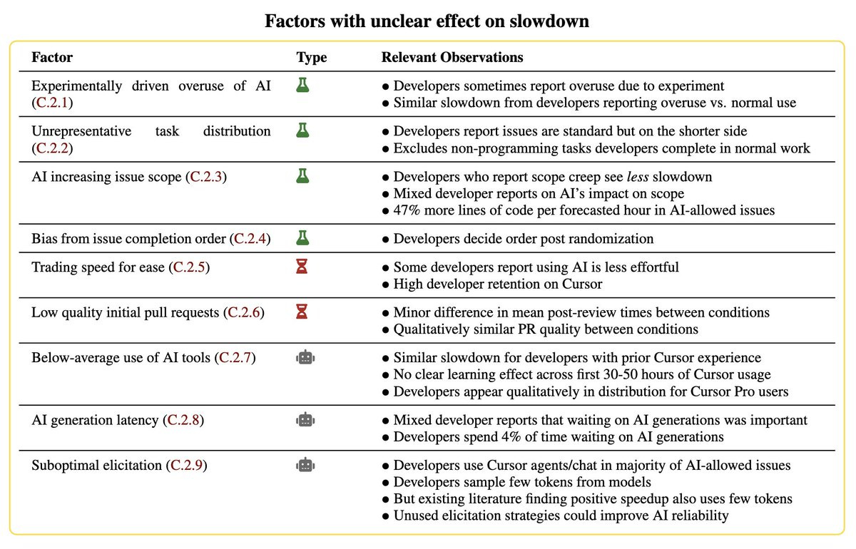 The AI tools offered were often new to their users, which slows people down. Participants might have been partly learning AI tools on METR’s dime? Developers said they weren’t significantly inconvenienced by the tool changes but you can’t trust self-reports.