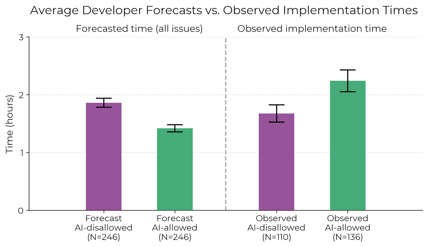 In perhaps the most shocking fact of all, developers actually slightly overestimated their required time in the non-AI scenario, I thought that was never how any of this worked?