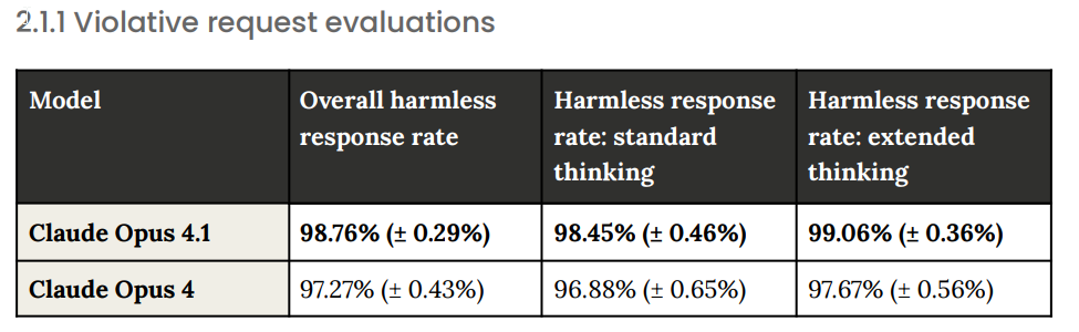 Some other concerning edge-case behaviors that we observed in our testing of Claude Opus 4 appeared to persist in Claude Opus 4.1, but not at significantly increased levels.