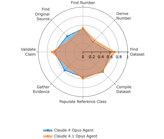 Dan Schwartz: Already enjoying Opus 4.1 vs Opus 4 as the Claude Code driver, though could be placebo. On Deep Research Bench, we find it the same on average, but clearly different: better at numeric & data tasks (kind of like code?), worse at qualitative reasoning.