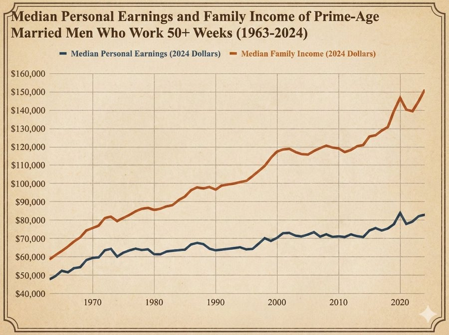 The claim that the *absolute affordabilityof being a married, one-earner family with kids has fallen would — if it were true — have straightforward win-win policy remedies like “higher wages and incomes.”