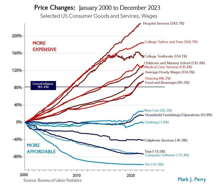 He starts off with the famous Mark Perry price changes chart.