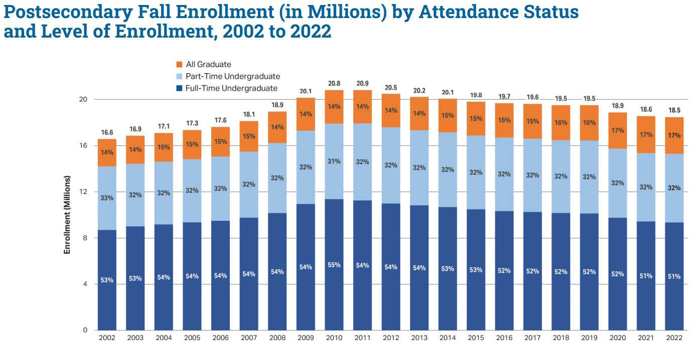 The actual hidden good news is that enrollment is down from peak, so people aren’t facing increasing pressure to do more and more secondary education.