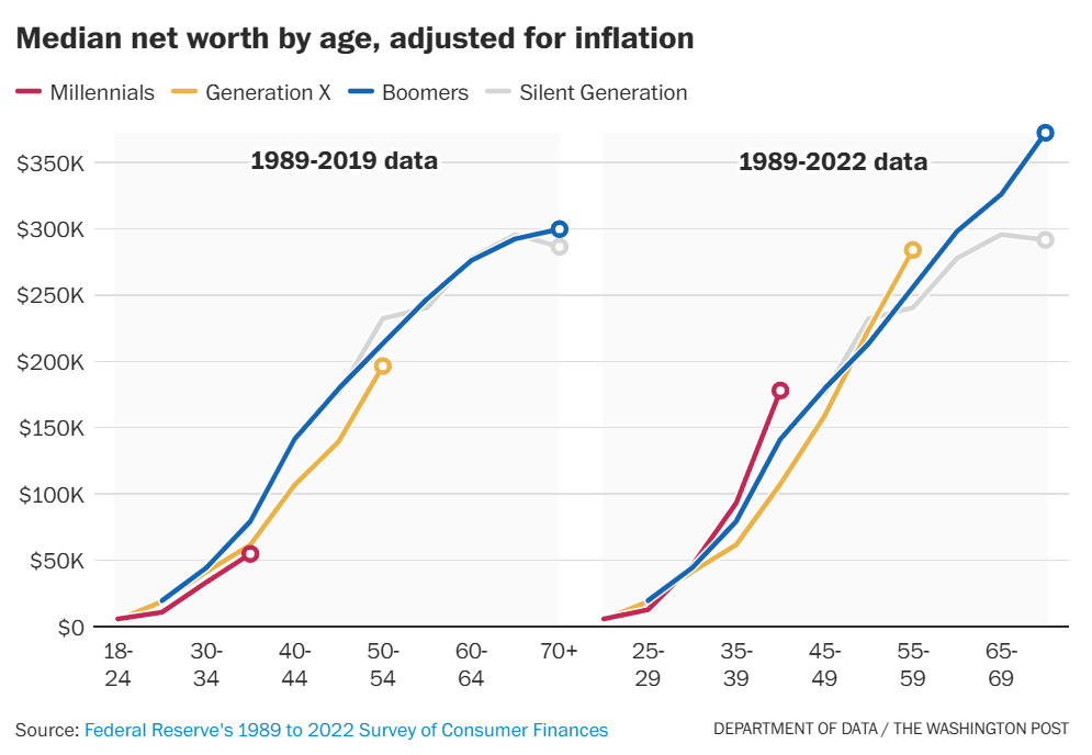We also need to look at generational wealth levels. We constantly play and hear the ‘generation wealth level’ game, which is mainly about how old people are, and secondarily about home and stock price appreciation, and there was never that much story there to begin with, the gaps were always small?