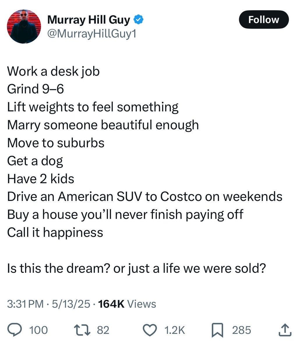 The calculations behind the claims were invalid, the central claim (that the ‘true poverty line’ was $140k) was absurd, but the terrible vibes are real. People increasingly feel that financial life is getting harder and that success is out of reach.